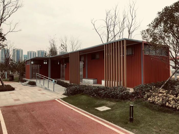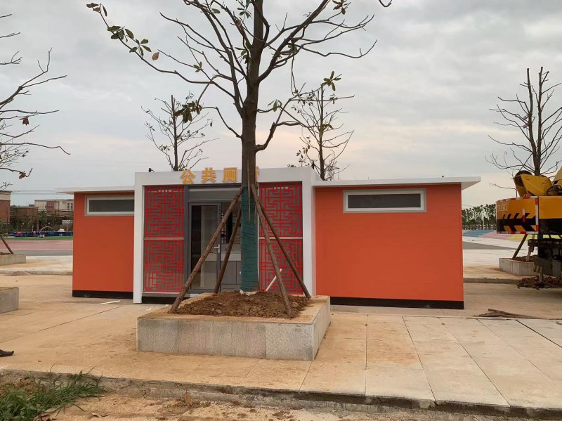 MORE拼裝廁所;在廠里做好各個廁所部件,再到現(xiàn)場組裝在一齊,適合不易運輸?shù)拇笮蛶_@座箱式廁所,女廁5個蹲位內(nèi)配工具間,男廁2個蹲位+2小便斗,第三衛(wèi)生間由殘疾馬桶、助力洗手盆和兒童馬桶、兒童洗手盆外加嬰兒臺等設(shè)施。廁所前后有窗,通風(fēng)采光,前部走廊裝有屋檐,防雨防曬。此廁所位于公路綠道邊,整體大氣,功能齊全,造型美觀,是一道難得的靚麗景觀!